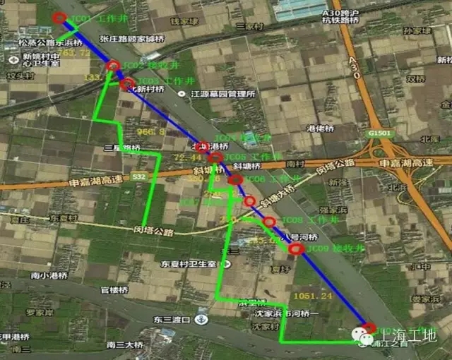 現(xiàn)場負(fù)責(zé)人告訴工地君黃浦江上游水源地連通管工程C5標(biāo)自松江泵站至金山分水點段的JC-01井到JC-10井,包括10座頂管井及9個頂進(jìn)區(qū)段,標(biāo)段線路長度4237.26m,總造價2.05億元。